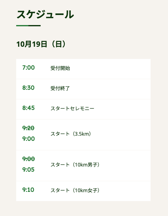 スタート時間が下記の通り変更となりましたのでお知らせいたします。