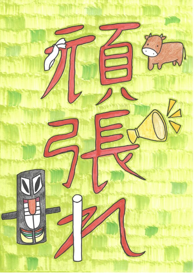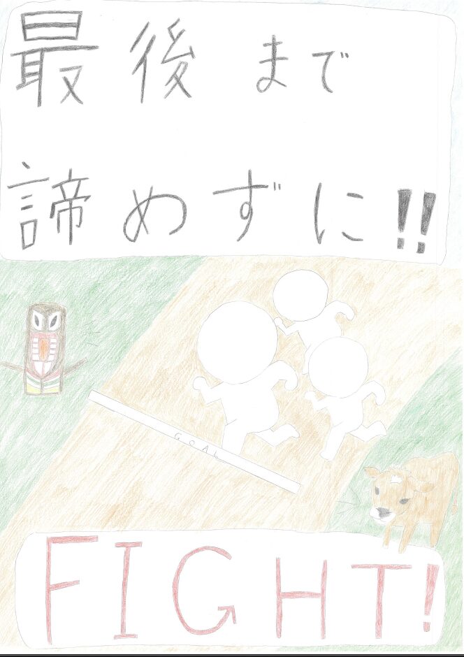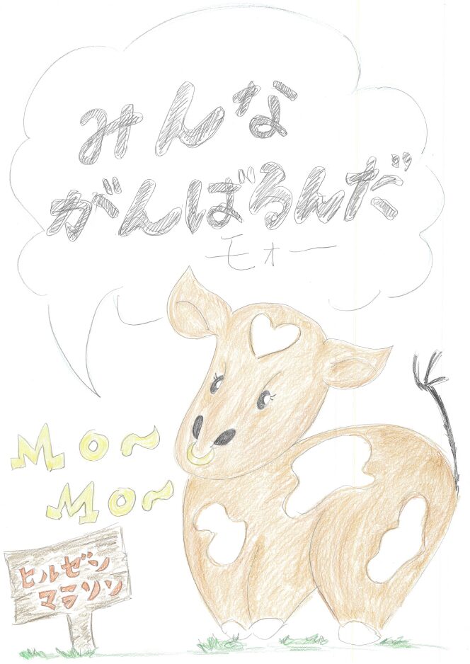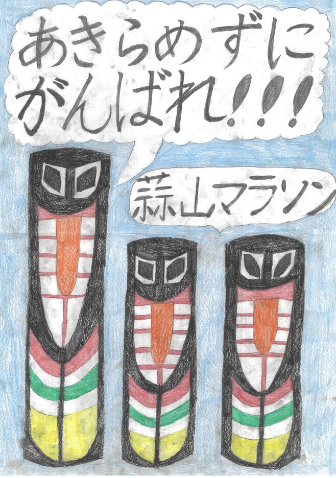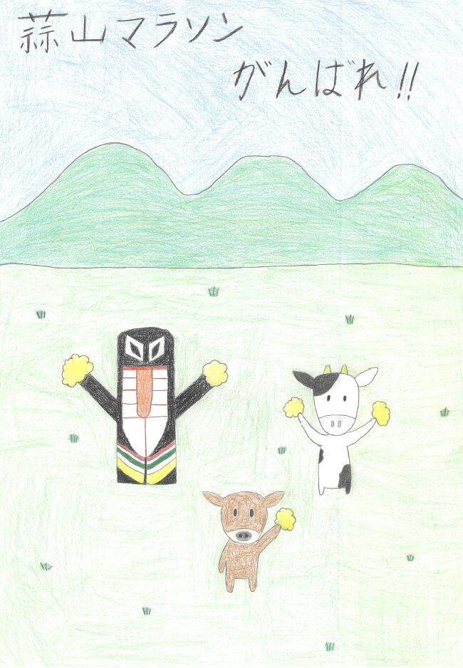第44回蒜山高原マラソン大会の開催にあたり、地元の中学生がランナーの安全と完走を願い、心を込めてイラストを描きました。